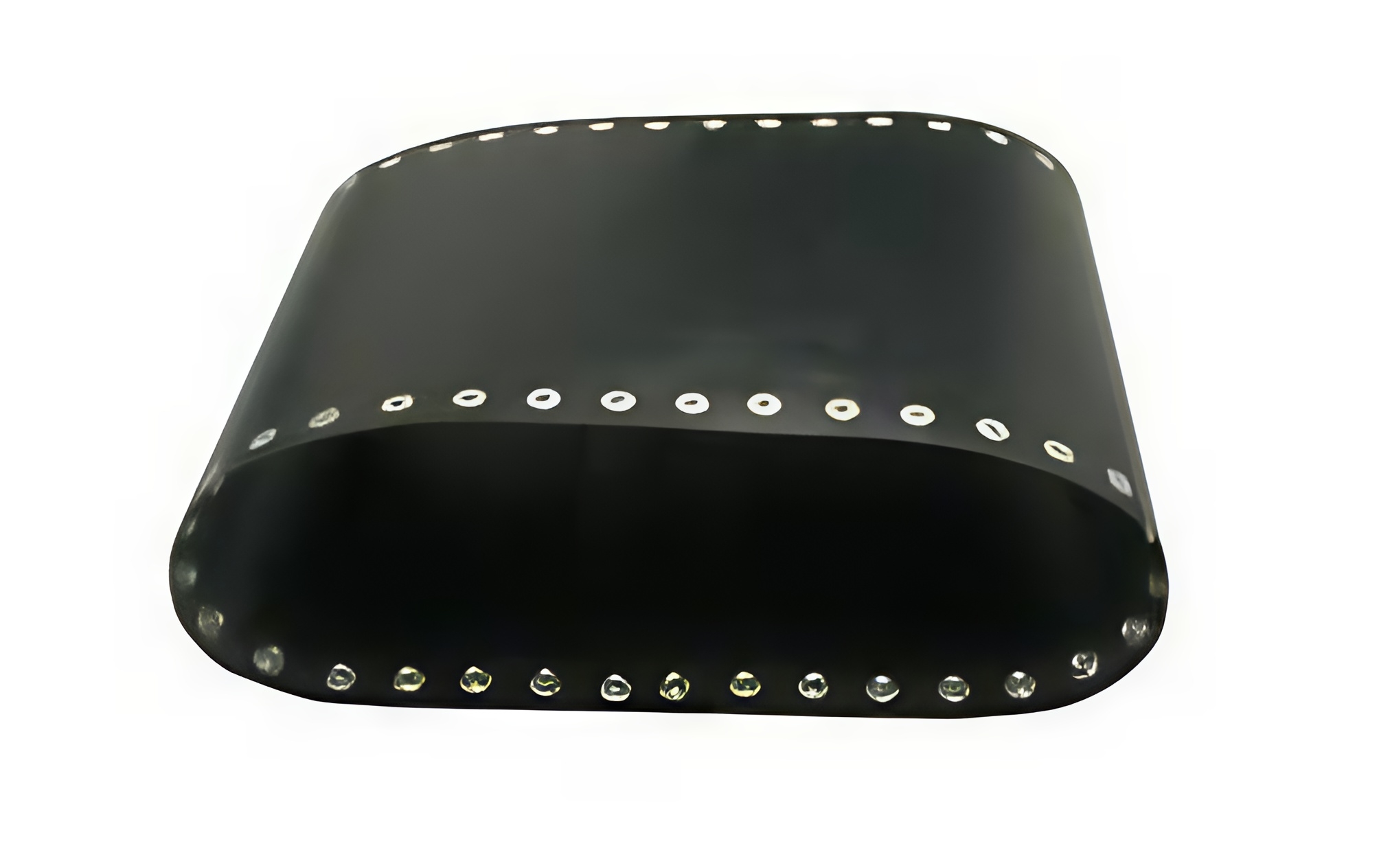 Banda contínua en Teflón® (PTFE) negro antiestático con remaches laterales, diseñada para máxima estabilidad y resistencia en procesos industriales. Ideal para líneas de producción que requieren control de estática, alta durabilidad y excelente rendimiento en ambientes exigentes.